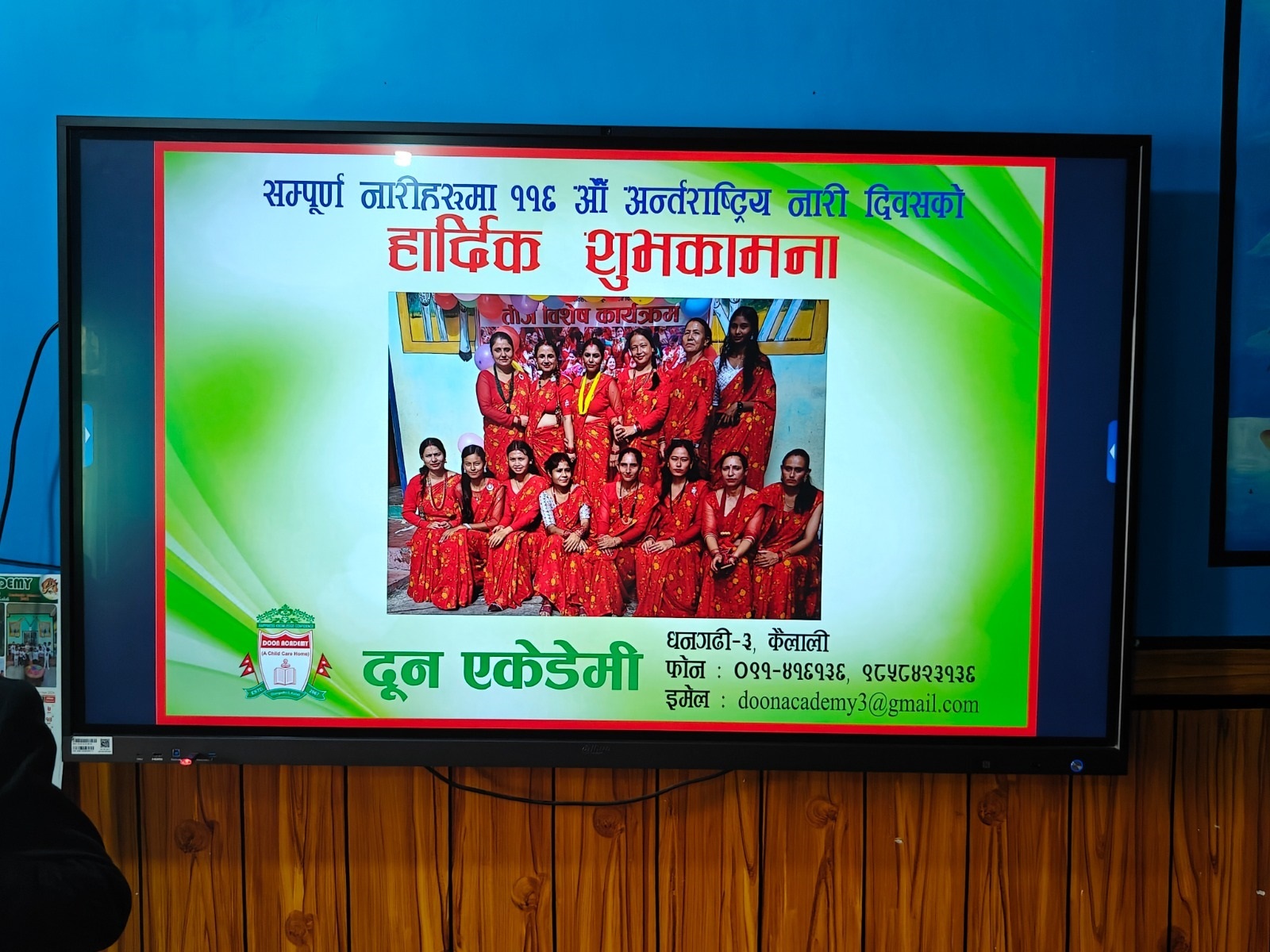धनगढी — धनगढी उप–महानगरपालिका–३ स्थित दून एकेडेमीले ११६औँ अन्तर्राष्ट्रिय नारी दिवसको अवसरमा विविध कार्यक्रम आयोजना गरी मनाएको छ।